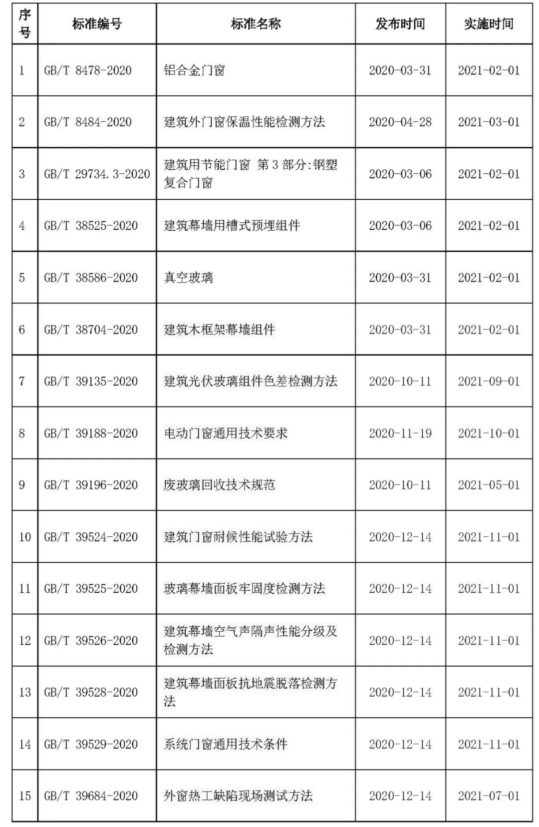 幕墻門(mén)窗國(guó)家標(biāo)準(zhǔn)(2020)