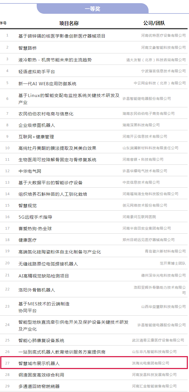 清華校友第五屆三創大賽中原賽區,歷時6個月,共收到來自湖南、湖北、山東、山西、河南五個省份的102個項目報名參賽。圍繞大數據、健康醫療,先進制造,人居環境、文創體育等領域,在各賽點初賽的基礎上,7月29日在鄭州舉行了中原賽區決賽。我司參與項目“智慧城市展示機器人”通過線上參賽的形式,在決賽中脫穎而出,獲得了各個專家評委的一致肯定,取得中原賽區一等獎,并獲得推薦參加全球總決賽。